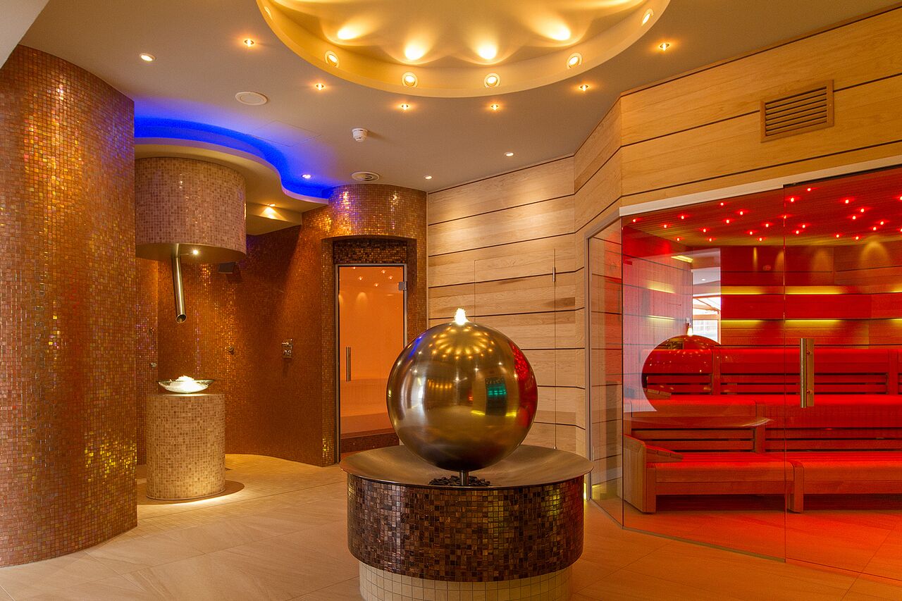 Der Wellnessbereich ist täglich von 16:00 bis 21:00 Uhr geöffnet. Ergänzend steht Ihnen ein kleiner Fitnessbereich für aktive Auszeiten zur Verfügung.